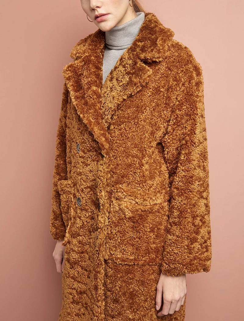 In what is arguably the color for fall the rusty hue of this coat adds to the cozy appeal.