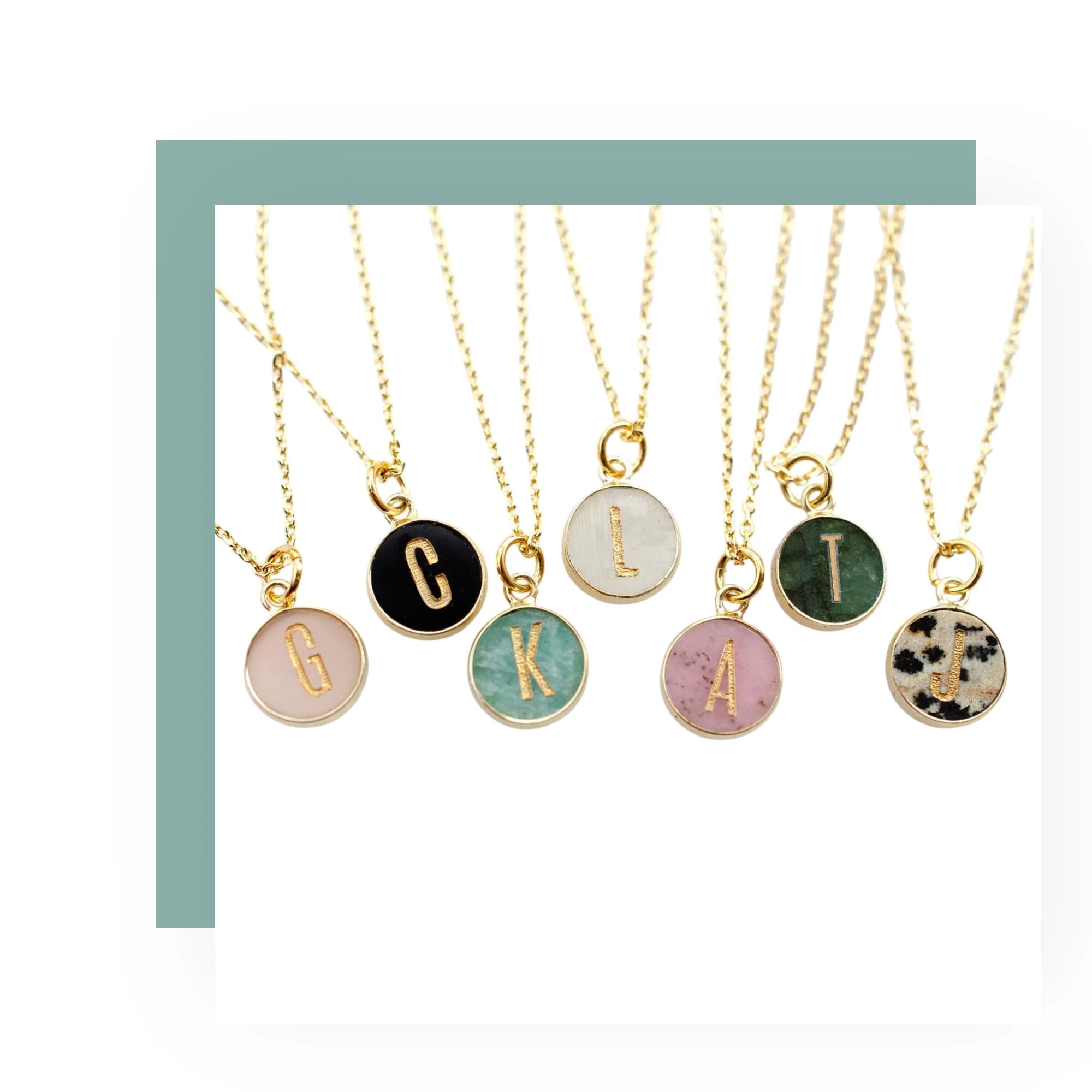 The classic monogram necklace gets an upgrade with a pretty natural stone pendant.
