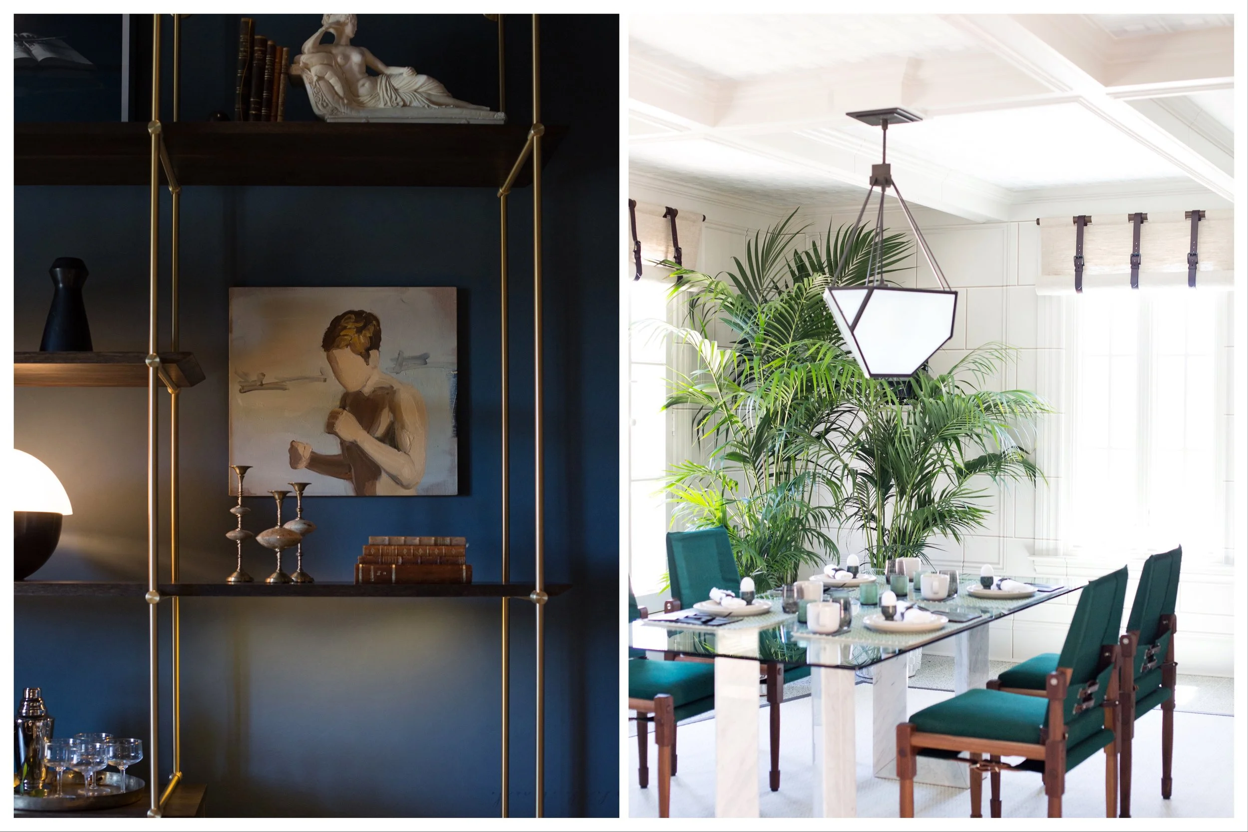 Lime Washed walls in a moody blue, K Interiors, Bright white walls make the vibrant greens pop, ECHE